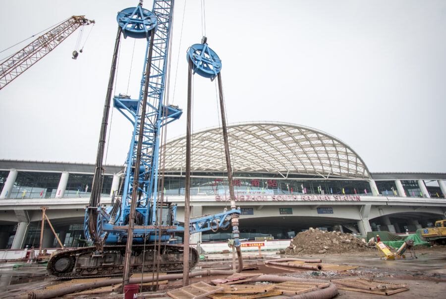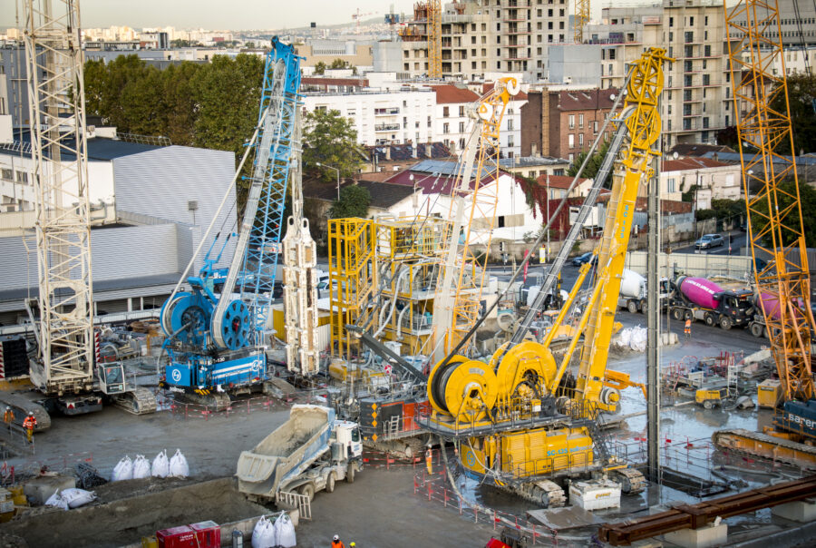 Diaphragm walls are often used for deep underground parking houses, tunnels, ramps and complex infrastructural constructions. By means of specialized crawler cranes equipped with special grabs, trenches are excavated into deep soil layers. On project locations with dense or rocky soils hydro mills are used instead of grabs.